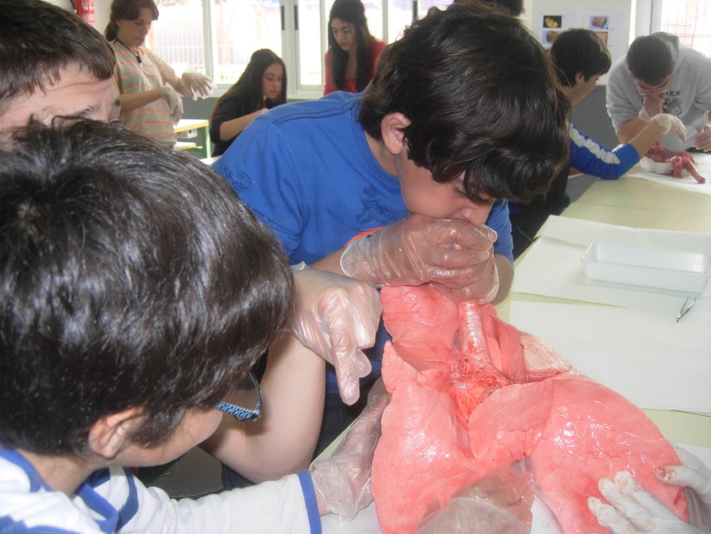 El día del centro realizamos la esperada práctica de disección, con corazones y pulmones de cerdo.